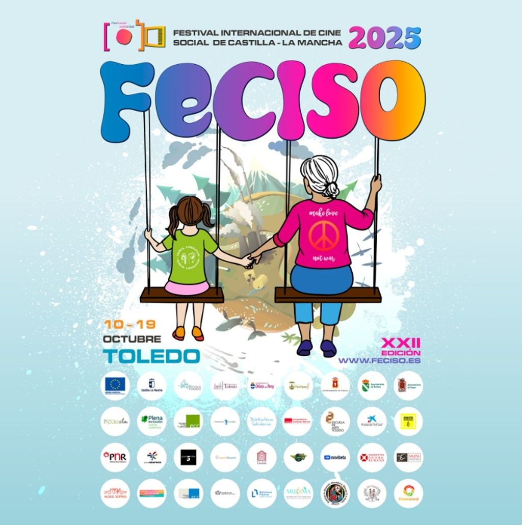 El Festival Internacional de Cine Social de Castilla-La Mancha (FECISO) ya tiene cartel oficial para su XXII edición, que se iniciará del 10 al 19 de octubre en Toledo. La obra gráfica de este año presenta una potente metáfora visual: una abuela y su nieta, tomadas de la mano mientras se balancean en columpios, contemplan un planeta sacudido por problemas como la contaminación, la desigualdad social, la violencia y los conflictos bélicos.