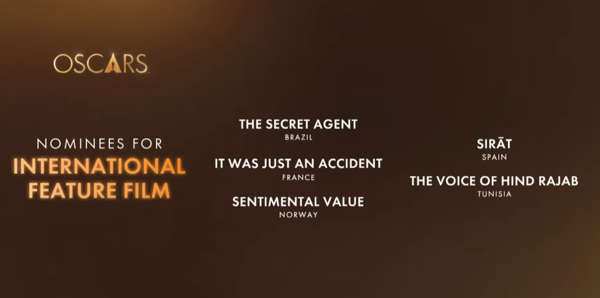 En la categoría de Mejor Película Extranjera, el abanico de películas ganadoras refleja aún más la amplitud del cine global: El agente secreto (Brasil) ofrece una mirada cruda y absorbente al thriller con trasfondo social; Un simple accidente (Francia) ha sido elogiada por su aproximación fresca a la ironía dramática; Valor sentimental (Noruega) repite su presencia internacional con su tono íntimo y cautivador; La voz de Hind Rajab (Túnez), basada en hecho reales recientes, ha recibido aclamación casi unánime por abordar temas dolorosos con respeto y profundidad —su alta puntuación entre críticos la posiciona como una de las obras más poderosas del año— ; y Sirat (España) destaca no solo por su calidad narrativa, sino por convertirse en un símbolo del cine español contemporáneo con nominaciones también en categorías técnicas en premios globales .